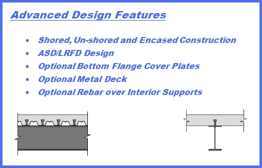 Composite Steel Beam Design software designs and checks encased and composite beams using ASD and LRFD design codes.