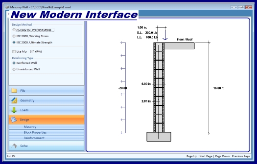 • NEW: Masonry Wall 7 has been updated to include ACI 530-11 and IBC 2012 design codes. Walls can be designed for Allowable stress or Ultimate strength using either ACI or IBC methods.