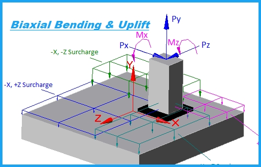 - Footings are designed to resist uplift and sliding forces as well as biaxial column moments and compressive forces.