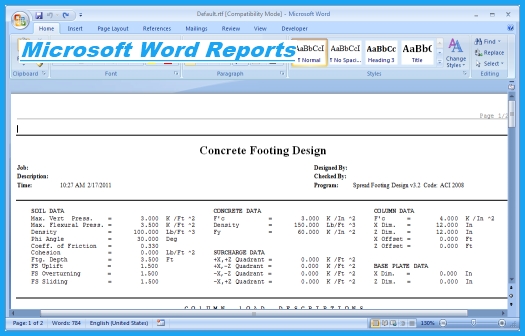 - User defined “default data” lets you reduce the design of a footing to simply inputting the loads.