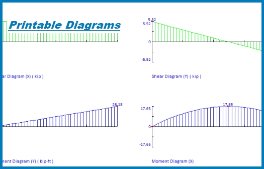 - Printable shear, moment and deflection diagrams.