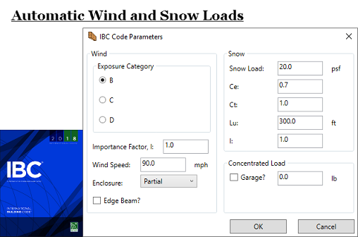 - Automatically determines concentrated roof, floor and garage loads per IBC 2018. Loads are automatically moved across the beam.