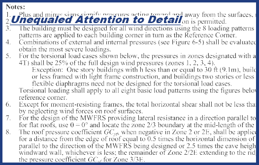 - Includes External Pressure Coefficients and Design Wind Pressures for new zones (1′, 2e, 2n, 2r, 3e, 3r) for Gable and Hip Roofs – Components and Cladding.