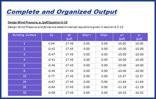 - Adjustments for Mean Sea Level, Importance Factor, topography, and Exposure Category are made automatically.